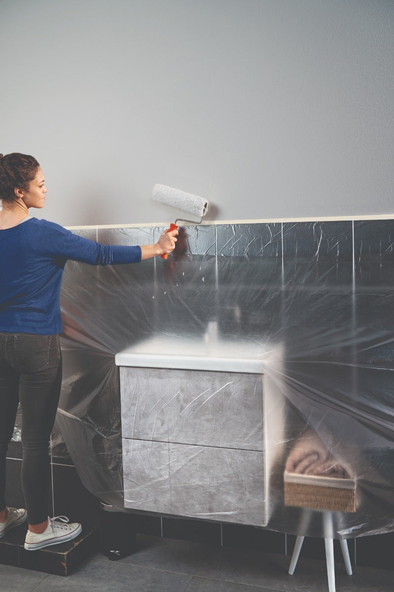 Un paquete de 3 rollos de plástico protector adhesivo 2 en 1. Es un film protector de polietileno con cinta adhesiva de enmascarar integrada. Es ideal para cubrir y proteger rápidamente grandes superficies como muebles, ventanas, pisos y electrodomésticos durante los trabajos de pintura. El film es antiestático y se adhiere a las superficies con facilidad. Con este producto puedes proteger tus muebles y pisos de la pintura, el polvo y la suciedad, sin tener que usar dos productos por separado. Es compatible con la mayoría de las superficies, como papel, cartón, plástico, metal, madera, etc.