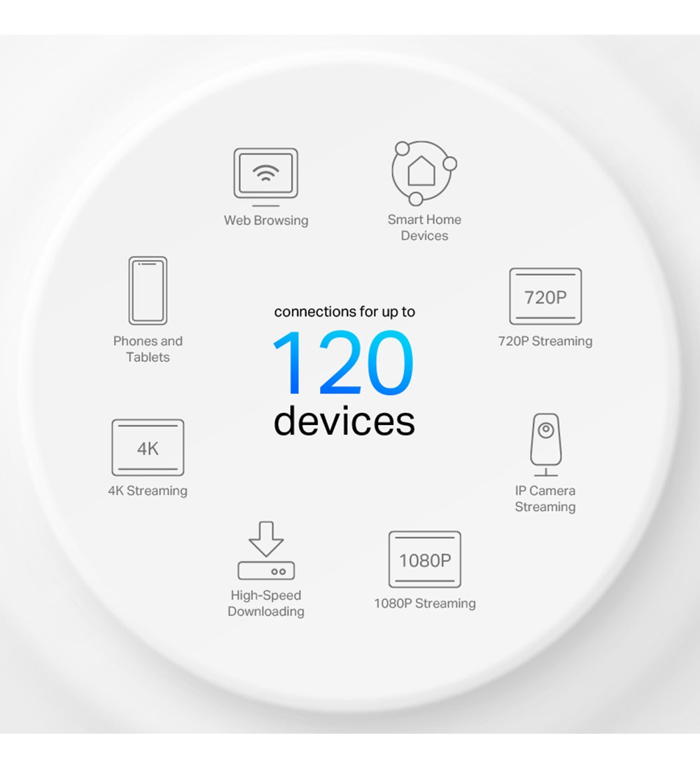 Un sistema de red Wi-Fi 6 (802.11ax) de malla (mesh) para todo el hogar. Este paquete incluye 3 unidades que trabajan juntas para eliminar las zonas muertas y las interrupciones de Wi-Fi, creando una red unificada. Con velocidades de hasta 1500 Mbps (1201 Mbps en la banda de 5 GHz y 300 Mbps en la banda de 2.4 GHz), este sistema es ideal para hogares con múltiples dispositivos conectados, como computadoras, smartphones, tablets, consolas de videojuegos y televisores inteligentes. El Wi-Fi 6 ofrece una mayor capacidad, lo que permite la conexión de más dispositivos sin afectar el rendimiento. Es un sistema Plug and Play, lo que significa que no requiere una configuración complicada.