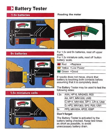 Tester Probador Pila Bateria Aa Aaa Varios Tamaños Hasta 9v